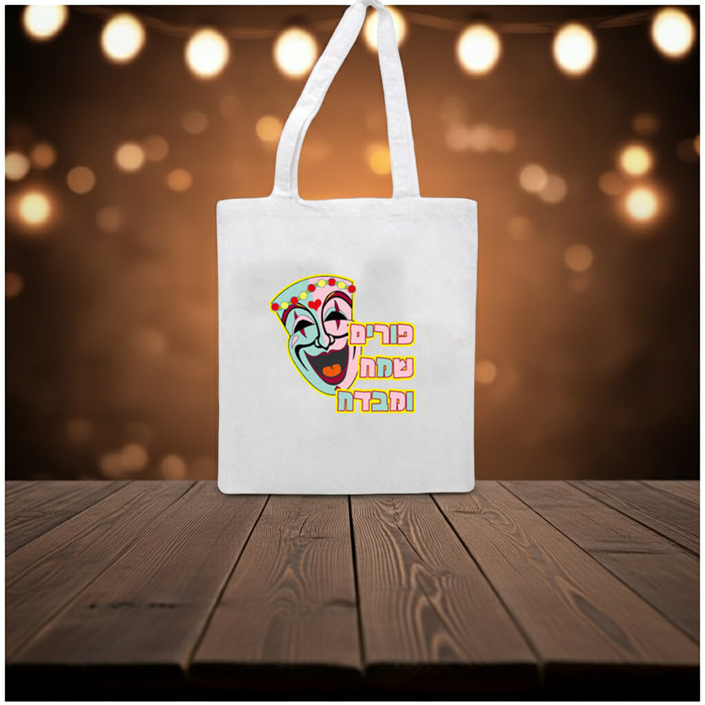 תיק מבד למשלוח מנות – תיק מבד עם הדפסה צבעונית אישית. אפשר לתת את התיק כמתנה בפני עצמה לפורים או למלא במגדנות ולתת כמשלוח מנות. ההדפסה על התיק היא לפי הזמנה או לפי בחירה מאחד העצובים שלנו, בהם נשלב את ההקדשה שלכם. תוכלו גם לשלוח עיצוב משלכם. כל אשר עליכם לעשות הוא לשלוח אלינו את הכיתוב / לוגו / תמונה להדפסה על התיק וביג בן יעשה את השאר: bigben.gifts@gmail.com.