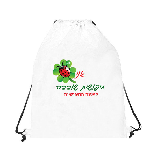תיק שרוכים מבד ניילון (בד של מטריות) עם הדפסה צבעונית לפי הזמנה. כל שעליכם לעשות, לאחר ביצוע ההזמנה, הוא לשלוח אלינו את הכיתוב ו/או הלוגו / תמונה להדפסה על התיק שרוכים מבד ניילון וביג בן יעשה את השאר. גודל התיק: כ- 30*45 ס"מ. גודל ההדפס: עד A4. התיק מתאים מאד לקייטנות ולטיולים יומיים.