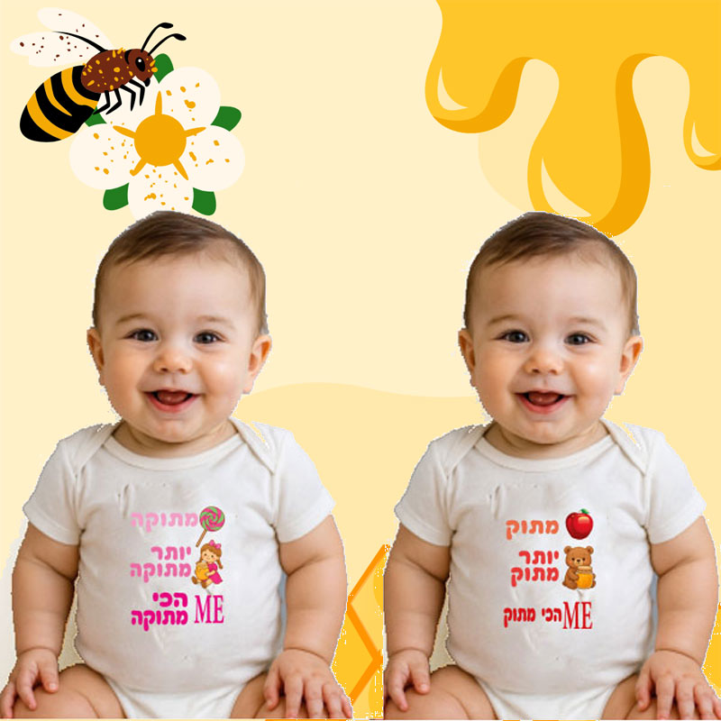 בגד לתינוק לראש השנה – תינוקות מתוקים עם בגד גוף מודפס בעיצובים מיוחדים לראש השנה הם מראה שקשה לעמוד בפניו. תוכלו לבחור את אחד העיצובים שלנו להדפסה על בגד הגוף בו נשלב גם את שם התינוק או תמונה או לשלוח עיצוב/תמונה שלכם להדפסה על הבגד גוף לתינוק.