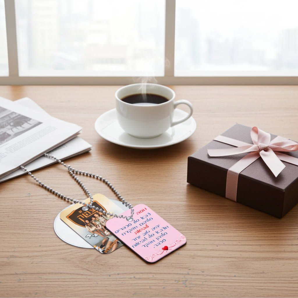 דיסקית עם תמונה – מתנה קטנה למתגייסים או מזכרת מחיילים / חיילות לשחרור מהצבא לחבר'ה שעדיין נשארים לשרת. הדפסה של תמונה ו/או כיתוב או ברכה או משפט חיזוק ושרשרת כדורים על לוחית מתכת המחוברת לשרשרת כדורים קטנים ממתכת. כל שעליכם לעשות, לאחר ביצוע ההזמנה, הוא לשלוח אלינו את הכיתוב ו/או ה תמונה להדפסה על הדיסקיות ממתכת וביג בן יעשה את השאר: bigben.gifts@gmail.com.