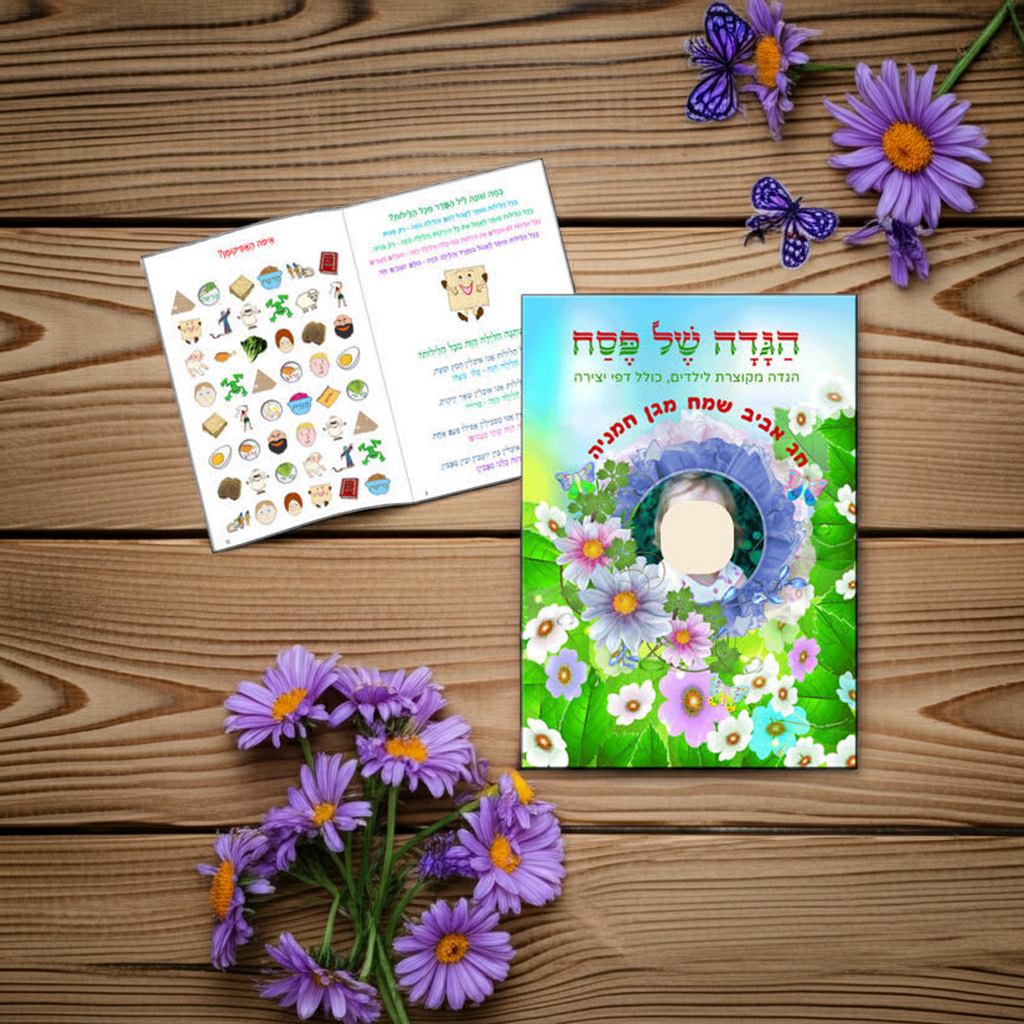 הגדה מקוצרת לילדים בצבעים מלאים, כולל הסברים לילדים בשפה יומיומית ודפי חידונים ושעשועונים. עם הדפסה אישית של תמונת הילד/ה על העטיפה של ההגדה לפסח וגם הקדשה מהגן. הגדה של פסח שתישאר למשמרת עוד שנים ארוכות.