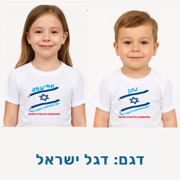 חולצת ילדים לעצמאות – חוגגים עצמאות בגן וצריך חולצה לבנה, רצוי עם תמונה אישית (או שם) בעיצובים מיוחדים לעצמאות? חולצת דרייפיט בהדפסה אישית של עיצובים מיוחדים לילדים ליום העצמאות. כל שעליכם לעשות לאחר ביצוע ההזמנה באתר הוא לשלוח אלינו את הכיתוב או הלוגו להדפסה על החולצה וביג בן יעשה את השאר: bigben.gifts@gmail.com .
