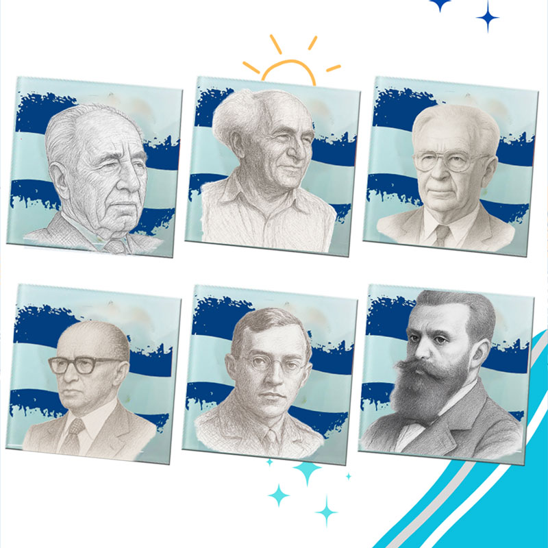 שישיית תחתיות זכוכית לכוסות עם הדפסה של גדולי האומה, שהשפיעו רבות על מדינת ישראל – מתנה ליום העצמאות, לאנשים אהובים, מורה / גננת / בוס, לחבר'ה בצבא או כמתנות פרסום וקידום מכירות. אפשר לשנות את תמונות האישים לפי העדפותיכם ולהוסיף לוגו ללא תוספת תשלום. תוכלו גם לשלוח את העיצוב האישי שלכם. כל שעליכם לעשות הוא לשלוח אלינו במייל את הכיתוב ו/או הלוגו / תמונה להדפסה על התחתיות מזכוכית לספלים וביג בן יעשה את השאר.