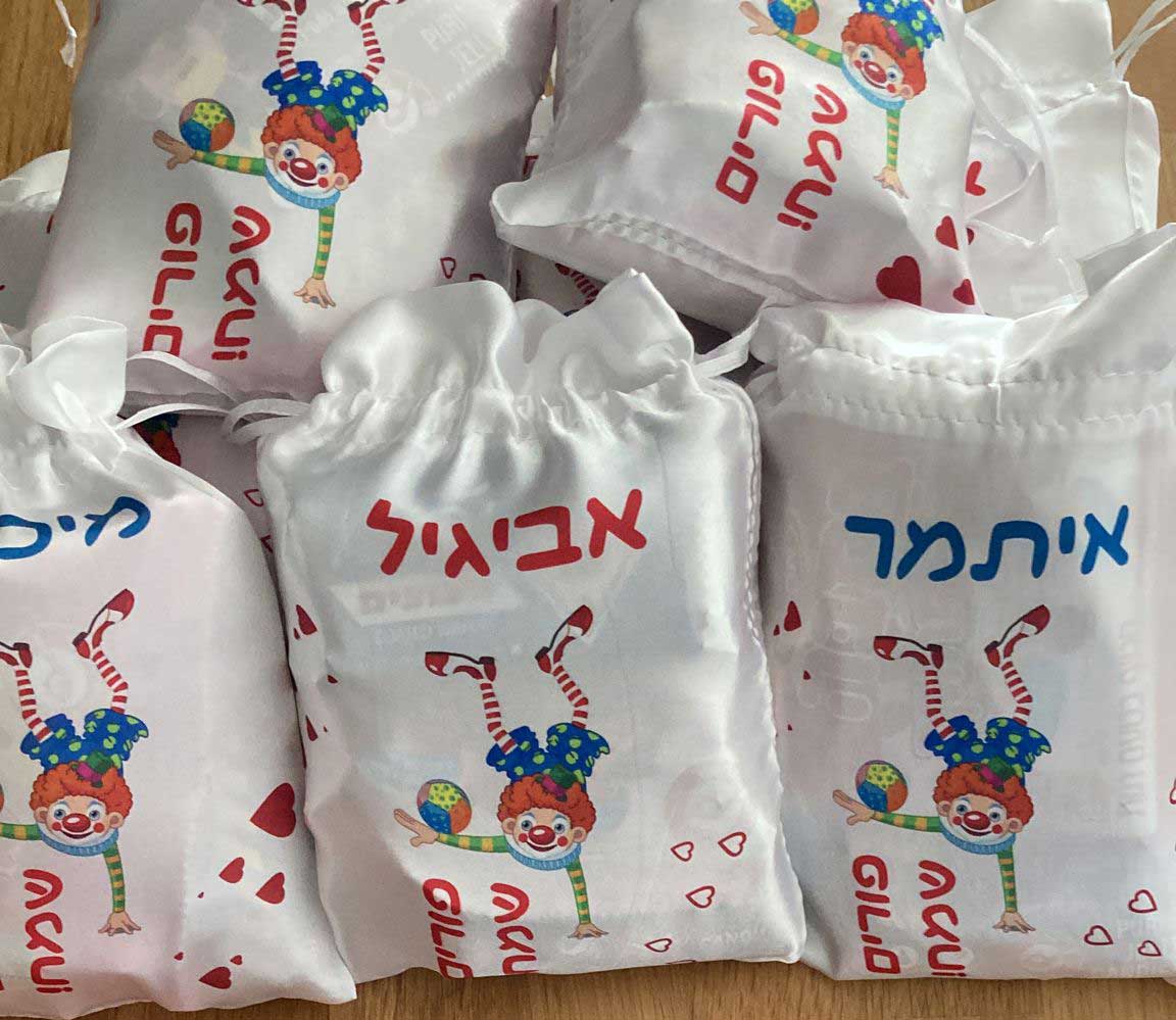 שקית קטנה למשלוח מנות עם הדפסה לפי בחירה מאחד הדגמים שלנו או לפי הזמנה – מתנה קטנה וסמלית במיתוג אישי לילדי הגן לפורים שתישאר לאחר שהממתקים ייאכלו… כל שעליכם לעשות, לאחר ביצוע ההזמנה, הוא לשלוח אלינו (bigben.gifts@gmail.com) את הכיתוב ו/או הלוגו / תמונה להדפסה על ה שקית קטנה למשלוח מנות וביג בן יעשה את השאר.