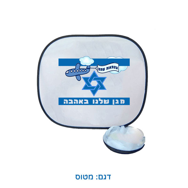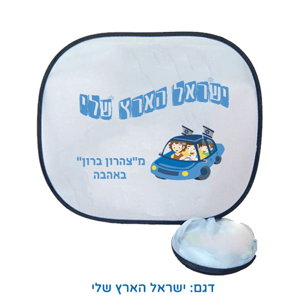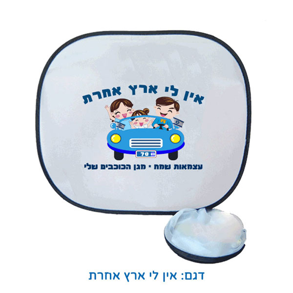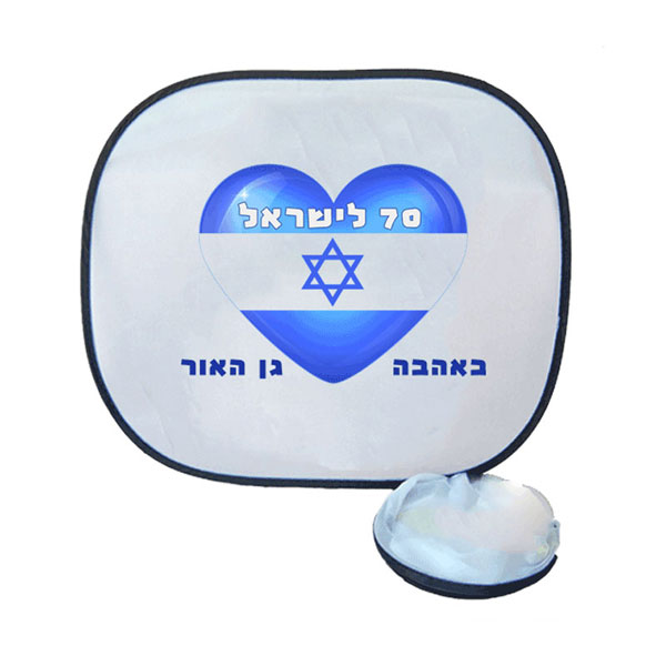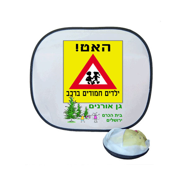 מגני שמש צדדיים למכונית – זוג צלונים צדדיים עשויים מבד רשת לרכב עם הדפסה צבעונית והקדשה אישית. מגני השמש, אשר מגנים על הרכב מפני השמש בעת נסיעה ובחניה, הפכו לאביזר חובה ברכבים בשל השמש הישראלית. הצלונים מגיעים עם 4 תליוני ואקום להצמדה לשמשת המכונית. כל שעליכם לעשות לאחר ביצוע ההזמנה הוא, לשלוח אלינו את התמונה / לוגו והכיתוב שתרצו להדפיס על מגני השמש וביג בן יעשה את השאר.